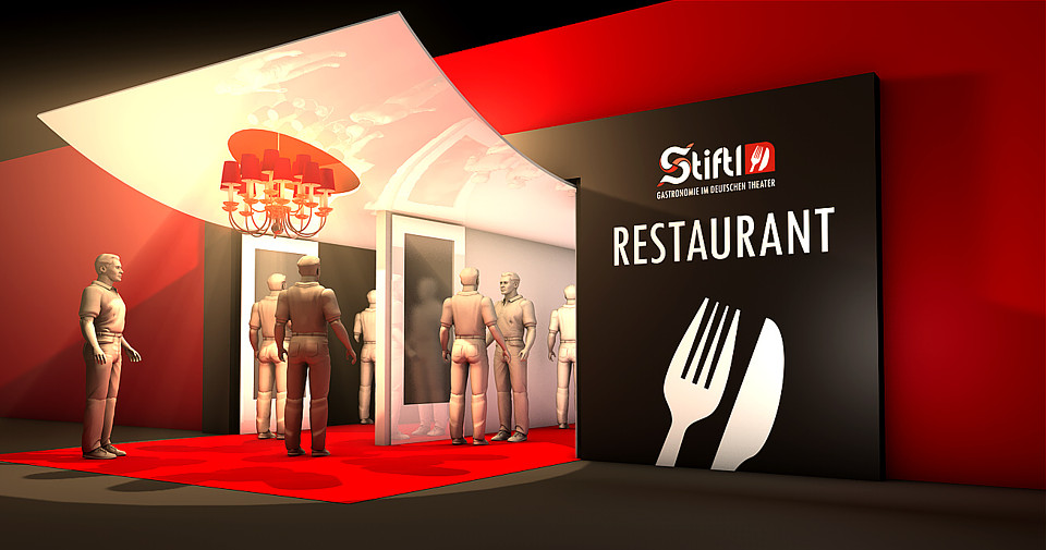 Im Innenbereich präsentiert sich die Stiftl-Gastronomie schlüssig im Rahmen des neuen Gesamtkonzeptes. Neben dem farblich abgestimmten Logo wurden auch die grafischen Elemente aus dem, für den Bereich „Theater-Gastronomie“ entwickelten Icon, stimmig ins Erscheinungsbild integriert.