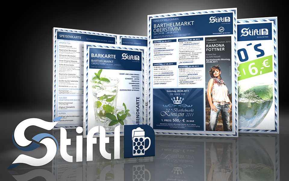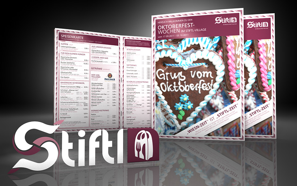 K-3D Graphic nahm die anspruchsvolle Herausforderung an und konzipierte für das Unternehmen ein schlüssiges Gesamtwerbekonzept, das die facettenreichen Geschäftsbereiche des Großgastronomieunternehmens Stiftl zu einer logischen Einheit verbindet.
